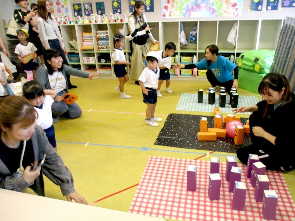 ゲームでは親子で競い合うなどスタンプラリーしたり、