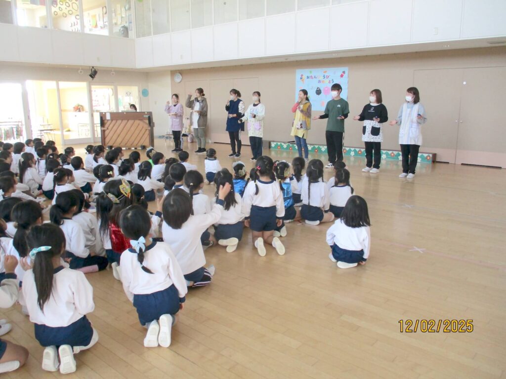 お誕生会では先生達の合奏を聞いたり、お餅つきの手遊びをしたりと笑い声いっぱいのお誕生会でした!そしてもうすぐクリスマス‥