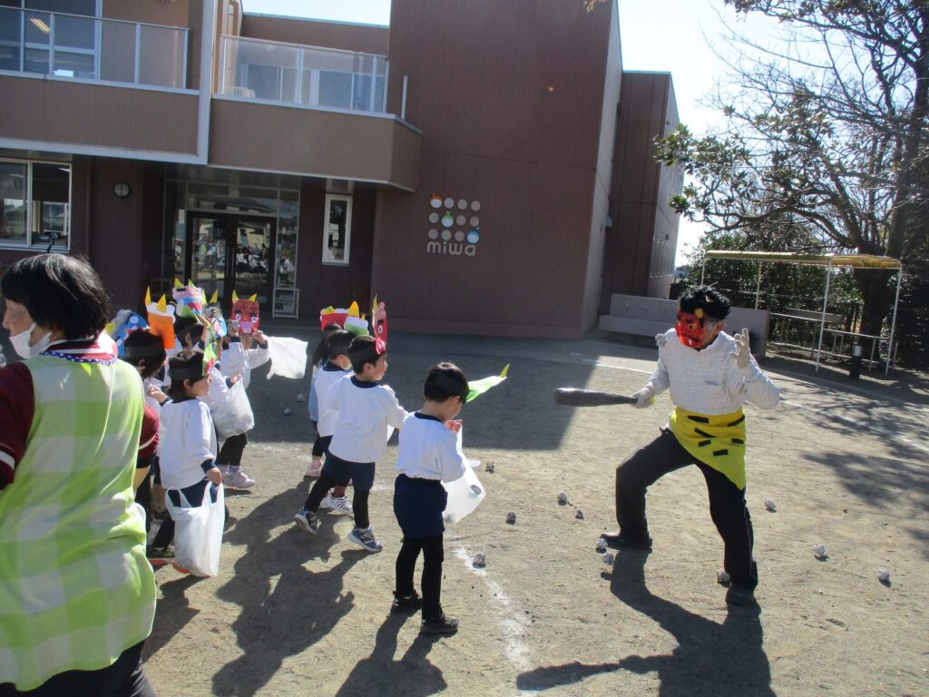 節分・各学年鬼と豆を制作して豆まきに挑みました