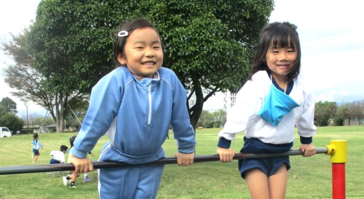 広場で思い切り走り回ってしっぽ取り!みんな速くなりました