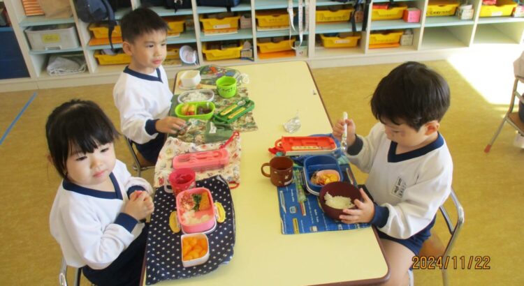 年長さんが田植えをしたお米が実ったので全園児に新米でごはんを炊きました!